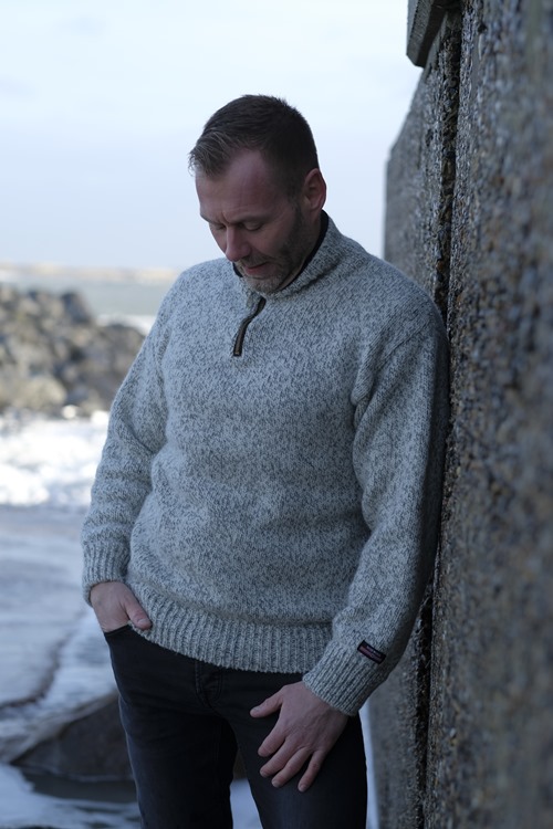 Island Sweater 100% uld i tyk kvalitet med fleec og lynlås i hals.